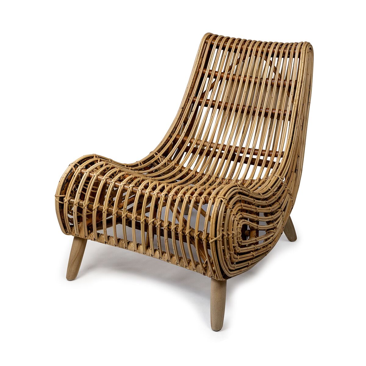 An elegant occasional chair suitable for enhancing any space in the home. This chair is made up of a Rattan skin on a natural frame with Teak legs. Available in Black and Natural. Size = 74cm X 94cm X 78cm